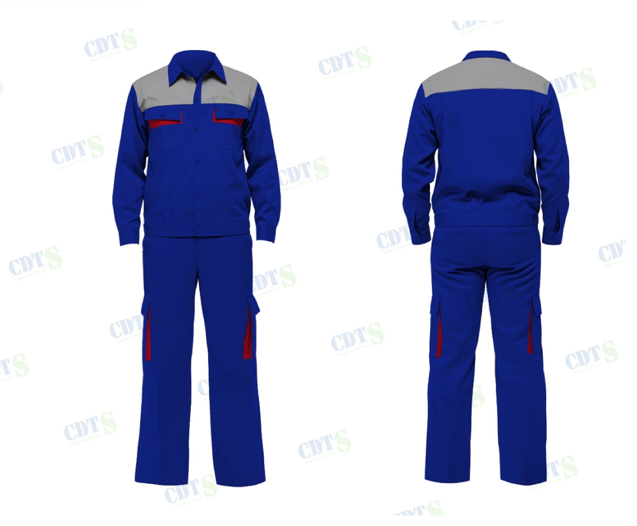 Đồng Phục Bảo Hộ Lao Động - Chất liệu vải: Vải Kaki Pangrim, Kaki Thành Công, Kaki thun hút ẩm tốt, thoáng mát. - Kiểu dáng: Áo rời, quần rời. + Quần áo được may kỹ, đẹp theo thiết kế + Bền, chịu lực cao, mang đến cảm giác thoải mái, an toàn cho người sử dụng. - Size: S – 5XL - Màu sắc: Màu xanh dương phối xám - Nhà sản xuất: CDTS - Ngành nghề sử dụng: Kiểu áo bảo hộ liền quần thích hợp cho công nhân, kỹ sư dầu khí, nhân viên bảo trì, chuyên viên kỹ thuật, khối điều hành sản xuất, cơ khí, điện lạnh,.....