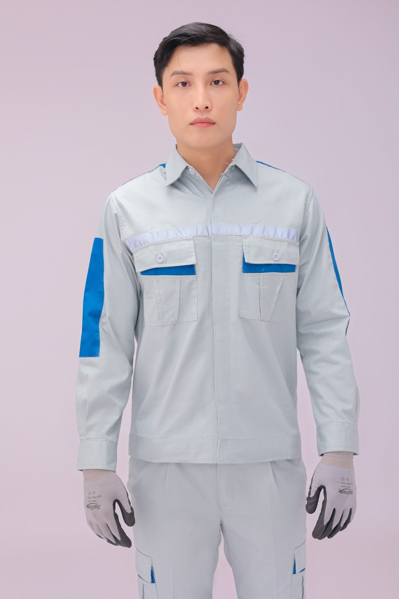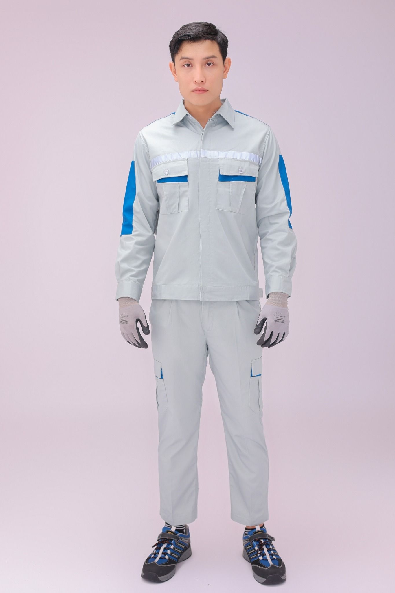 Thiết kế: Rộng rãi, tiện dụng. Áo được thiết kế với 2 túi ngực, phản quang 2 mặt, sử dụng cúc cài. Quần có túi hộp, có 2 túi chéo,1 túi hậu, quần có chun 2 bên hông, đảm bảo thuận tiện nhất khi sử dụng.